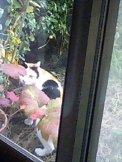 未音とは違う普通の三毛で、目の色は明るいグリーンでした。性別は分からなかったですが、模様がだいたい左右対称についてました。