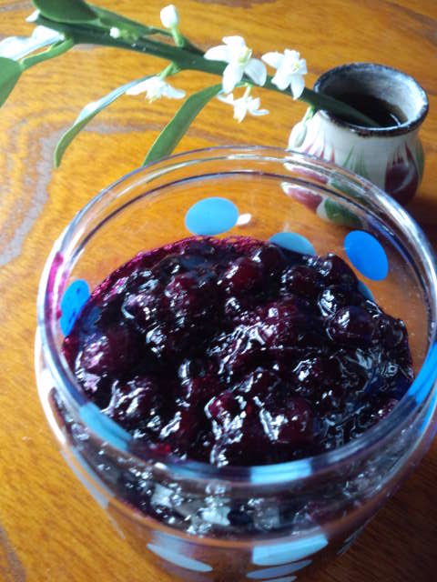 家で採れたブルーベリーでジャム作りました! ブルーベリー450gに対して砂糖200g(45g分蜂蜜入れてみました)の割合です。ジャム全般に言えますが、加熱は、砂糖が溶けてからの方が上手くいきます。水が出るので、砂糖が焦げ付くのを抑えられます。