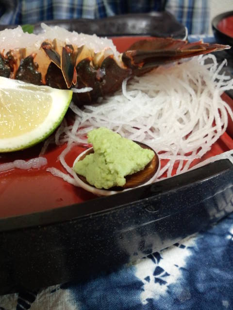 伊勢エビ! 今年は不漁で小さいですが、甘くて弾力があって美味しかったです。ギーって鳴きました!