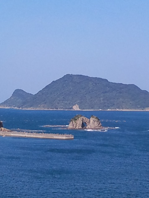 一番右は油津の名所でダイビングスポット。グラスボートも運航します。分かりづらいですが、アーチ状に穴が空いてます。