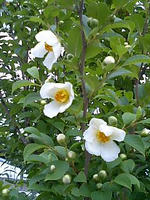 今年も沙羅(ナツツバキ)が咲きました。いい花なんですが、何度挿し木しても殖えない…。