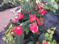 ピークだったのはアンスリウム(左)。半ジャングルでしたが下も見よう! パイナップルがなっている(右)!