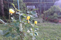 こちらは復活組。黄色い方は昨年、根がダメージを受けましたが、地植えにしたら元気になりました。赤い方は一昨年剪定しすぎて花芽が出なくなり、今年蕾をつけました。来年に更なる期待です。