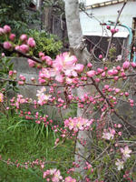アーモンド! 今年はいっぱい花をつけましたv 意外と大きい花です。父がせっせと受粉しています。後は実が生るかどうか。そしてちゃんと大きくなるか。